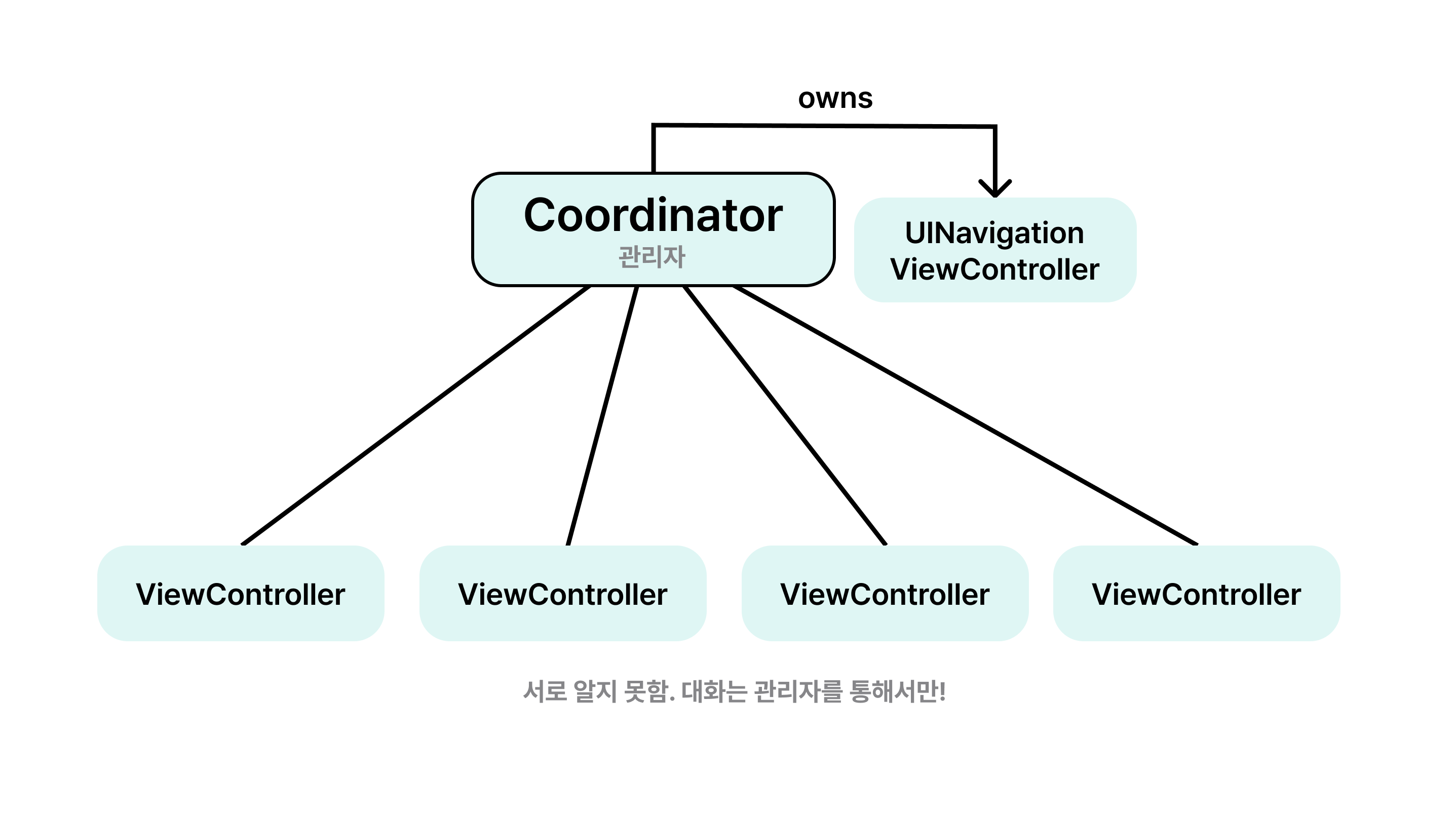 - ์ต์์ Coordinator: ChildCoordinator(ํ์ ์ฝ๋๋ค์ดํฐ)๋ฅผ ์์ฑํ๊ณ ์ ๊ฑฐ. ๋ชจ๋ ์ฝ๋๋ค์ดํฐ๋ฅผ ๊ด๋ฆฌํ๋ ๋ถ๋ชจ ์ฝ๋๋ค์ดํฐ