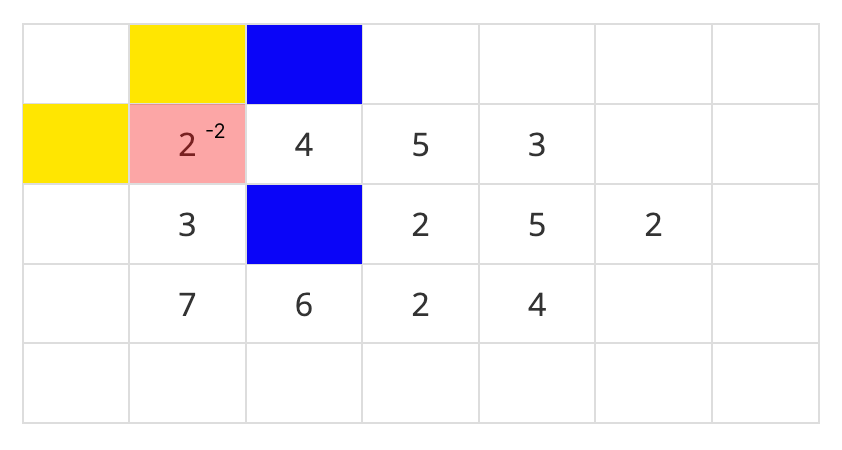 (1, 1) ์์น์ ๋ ธ๋์ ์ธ์ ํ ๋น์นธ์ 2๊ฐ(๋ ธ๋์ ๋ถ๋ถ)์ด๋ฏ๋ก, 1๋ ์ด ์ง๋๋ฉด 0์ด ๋ฉ๋๋ค. (1, 2) ์์น์ ๋ ธ๋๋ ์ธ์ ํ ๋น์นธ์ด 2๊ฐ(ํ๋์ ๋ถ๋ถ) 1๋ ์ด ์ง๋๋ฉด -2๊ฐ ๋์ด 2๊ฐ ๋๊ณ , ๋ 1๋ ์ด ์ง๋๋ฉด ๋ -2๊ฐ ๋์ด 2๋ ํ์ 0์ด ๋๋ ๊ฒ์ด ๋ง๊ฒ ์ฃ ??
