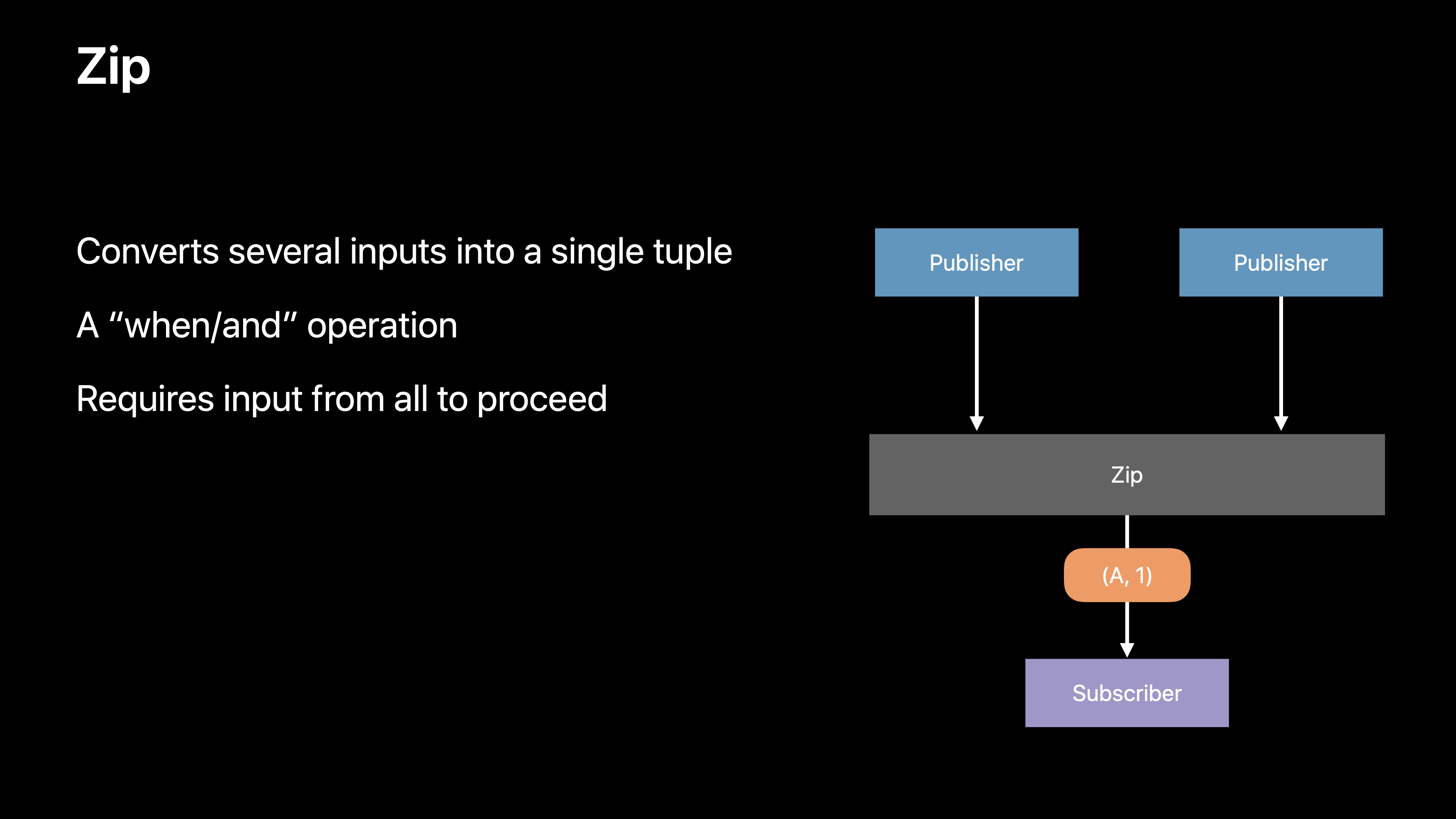 3๊ฐ์ ์ ์คํธ๋ฆผ์ด ํ์ํ zip์ ์ฌ์ฉํ์ฌ 3๊ฐ์ ๋น๋๊ธฐ ์์ ์ด ์๋ฃ๋์ด์ผ ๋ค์ด์คํธ๋ฆผ์ผ๋ก ๊ฐ์ ์ ๋ฌํ ์ ์๋๋ก ํ ์ ์์ต๋๋ค.