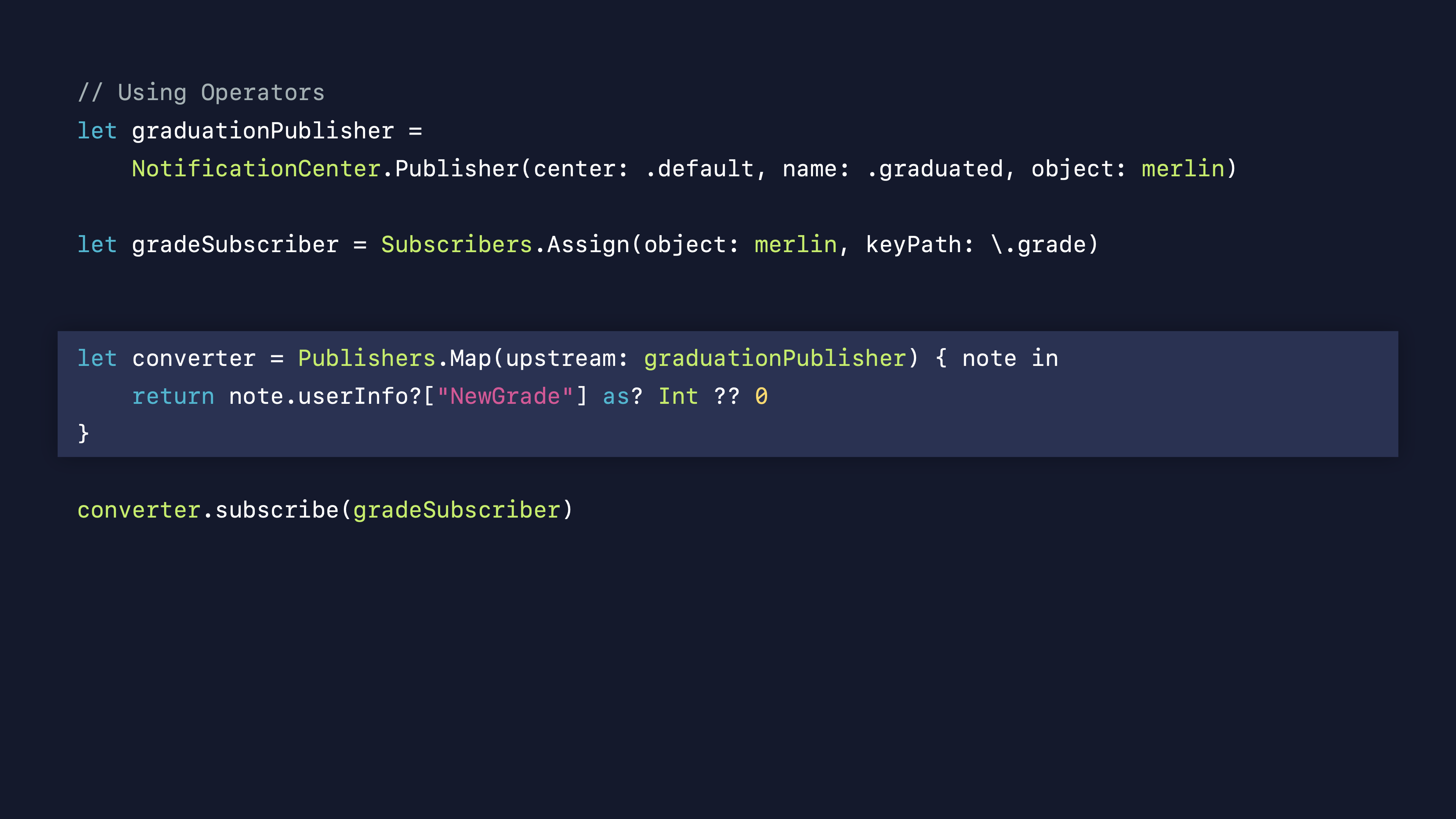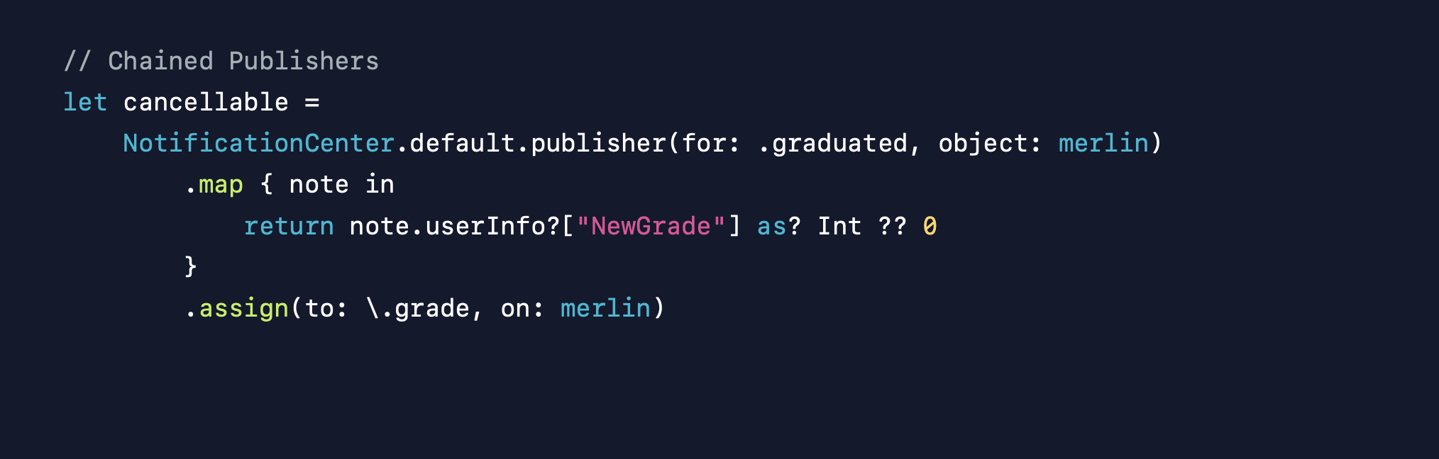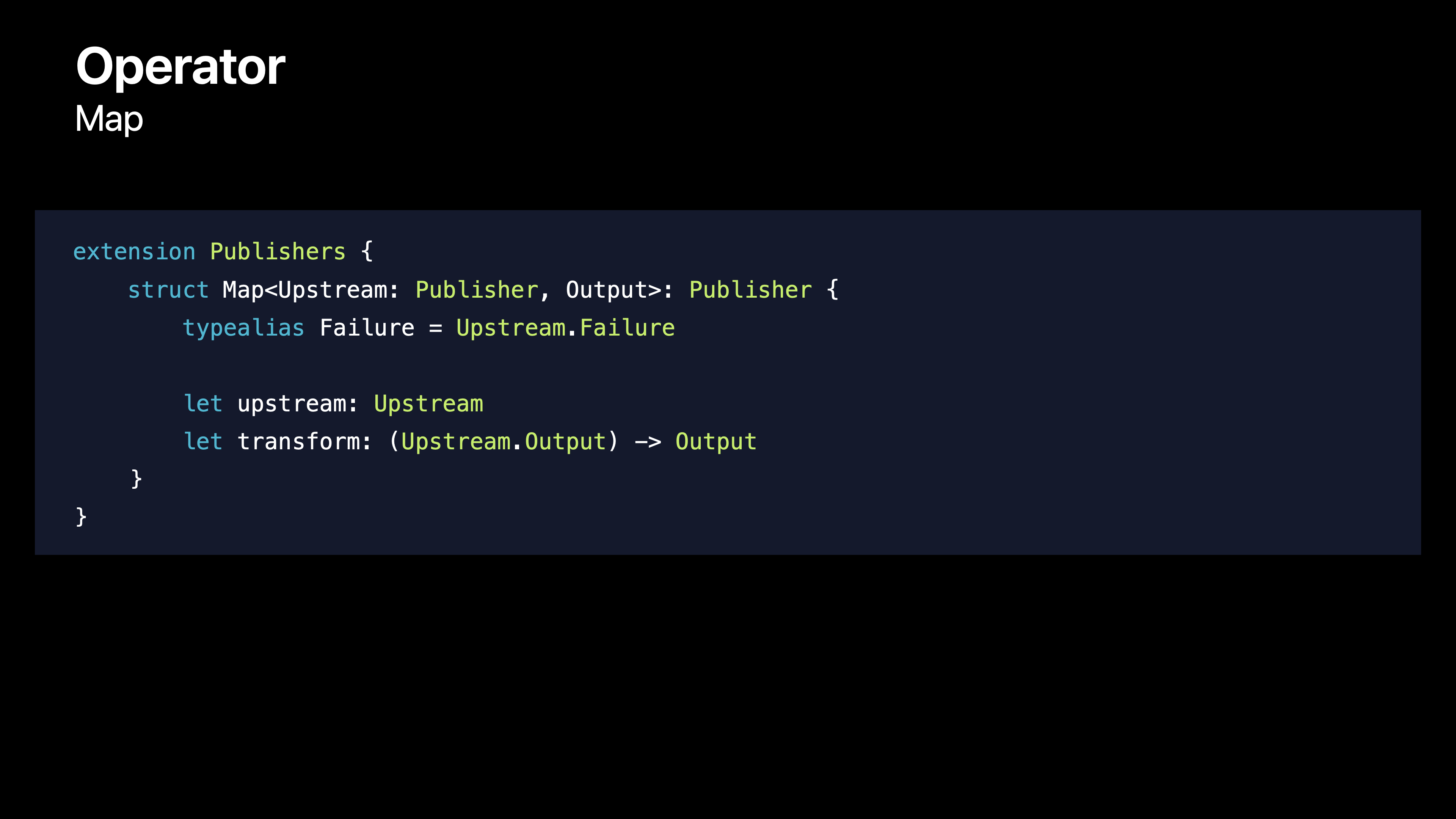 Publisher์ extension์ผ๋ก ์ ์ํ๊ธฐ ๋๋ฌธ์ self๋ฅผ ์ฌ์ฉํ ์ ์์ด ์ฝ๋๊ฐ ์ข ๋ ๊ฐ๋จํด์ง๋๋ค.