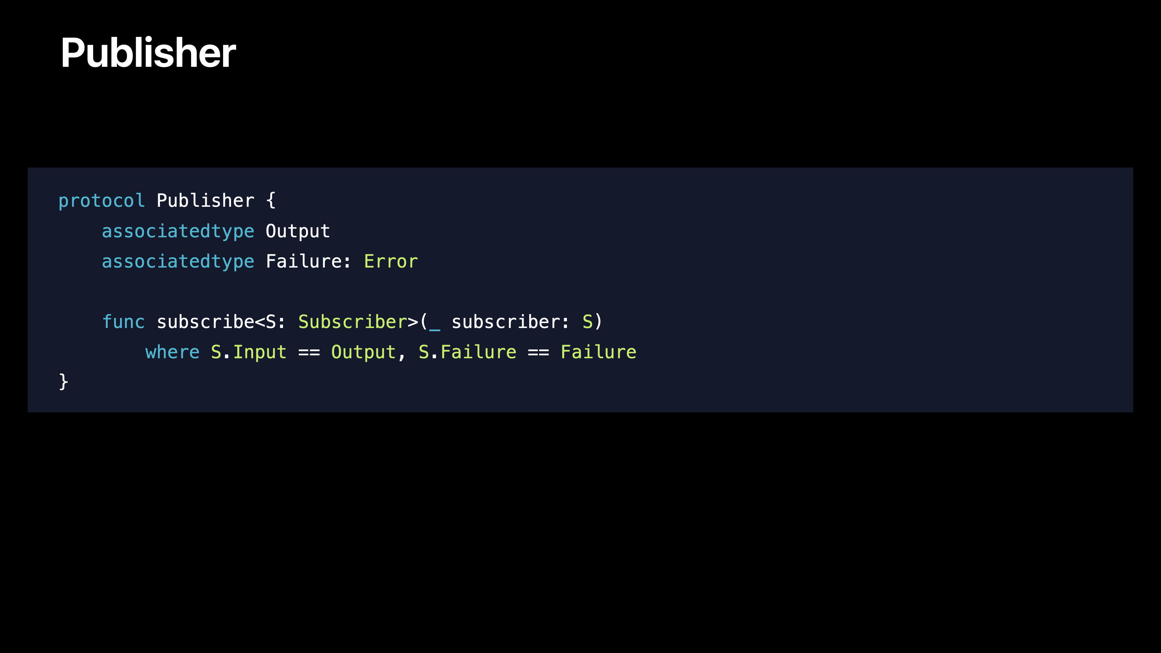 - ๋ ๊ฐ์ง associatedtype ์กด์ฌ (Input, Failure)