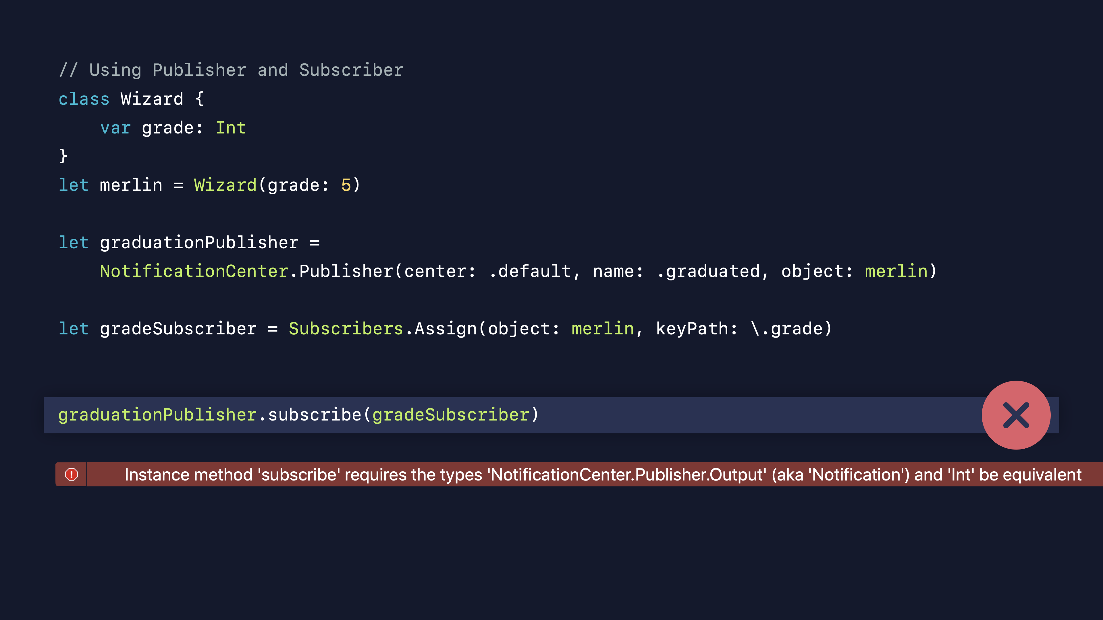 NotificationCenter๋ ์๋ฆผ์ ๋ณด๋ด์ง๋ง Interger ํ์ ์ ํ๋กํผํฐ์ ์ฐ๋๋ก ๊ตฌ์ฑ๋ Assign์๋ Intํ์ ์ ์ ์๊ฐ ํ์ํฉ๋๋ค.