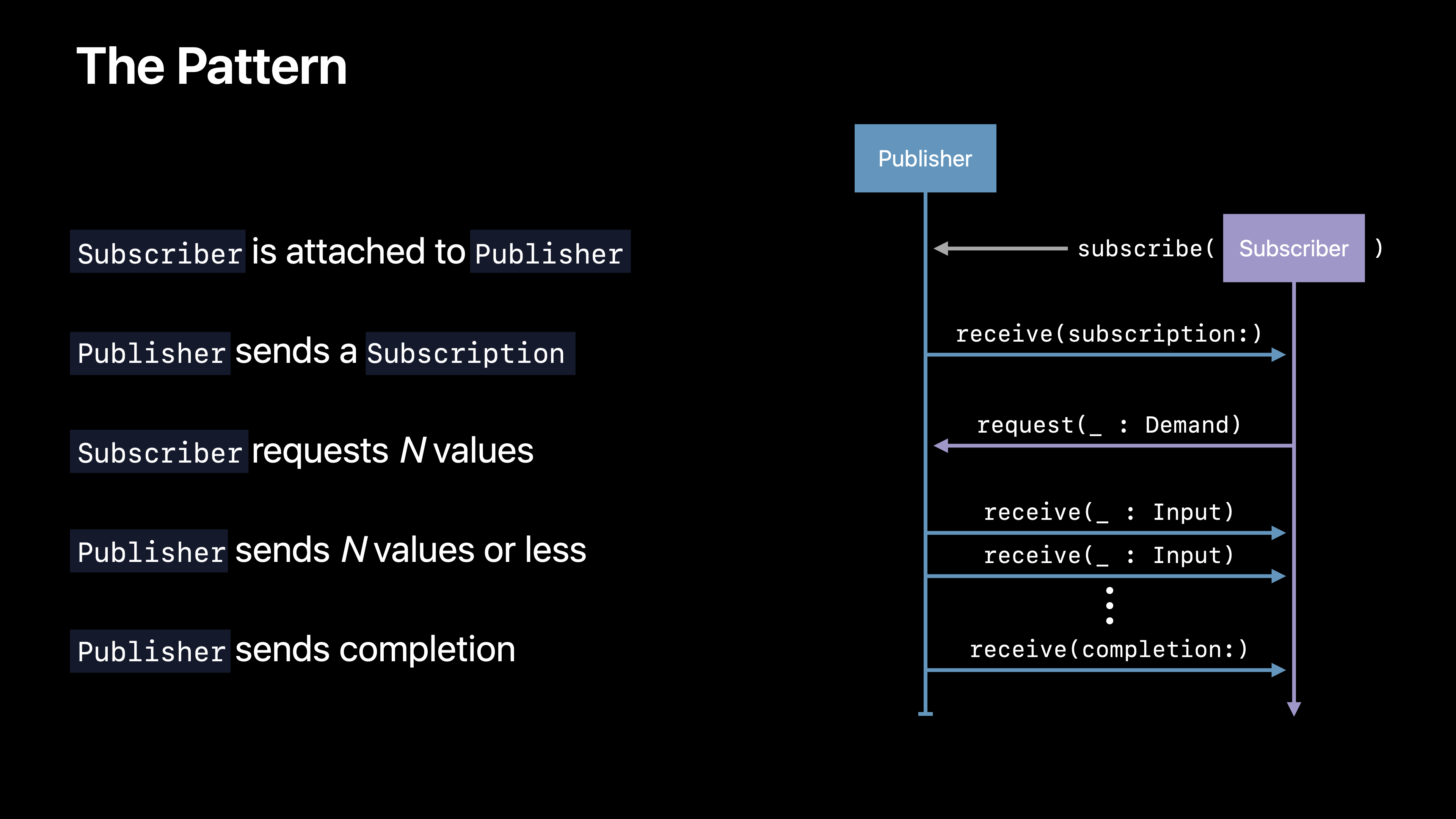 ํด๋น ์ธ์ ์์๋ Publisher, Subscriber, Operator ์ ๋ํด ๊ฐ๊ด์ ์ธ ๋ด์ฉ์ ๋ด๊ณ ์์ด Combine ํ๋ ์์ํฌ์ ๋ํด ํ ๋ฒ ํ์ด๋ณผ ์ ์์๋ ์ธ์ ์ด์์ต๋๋ค.